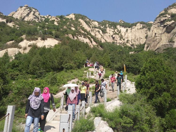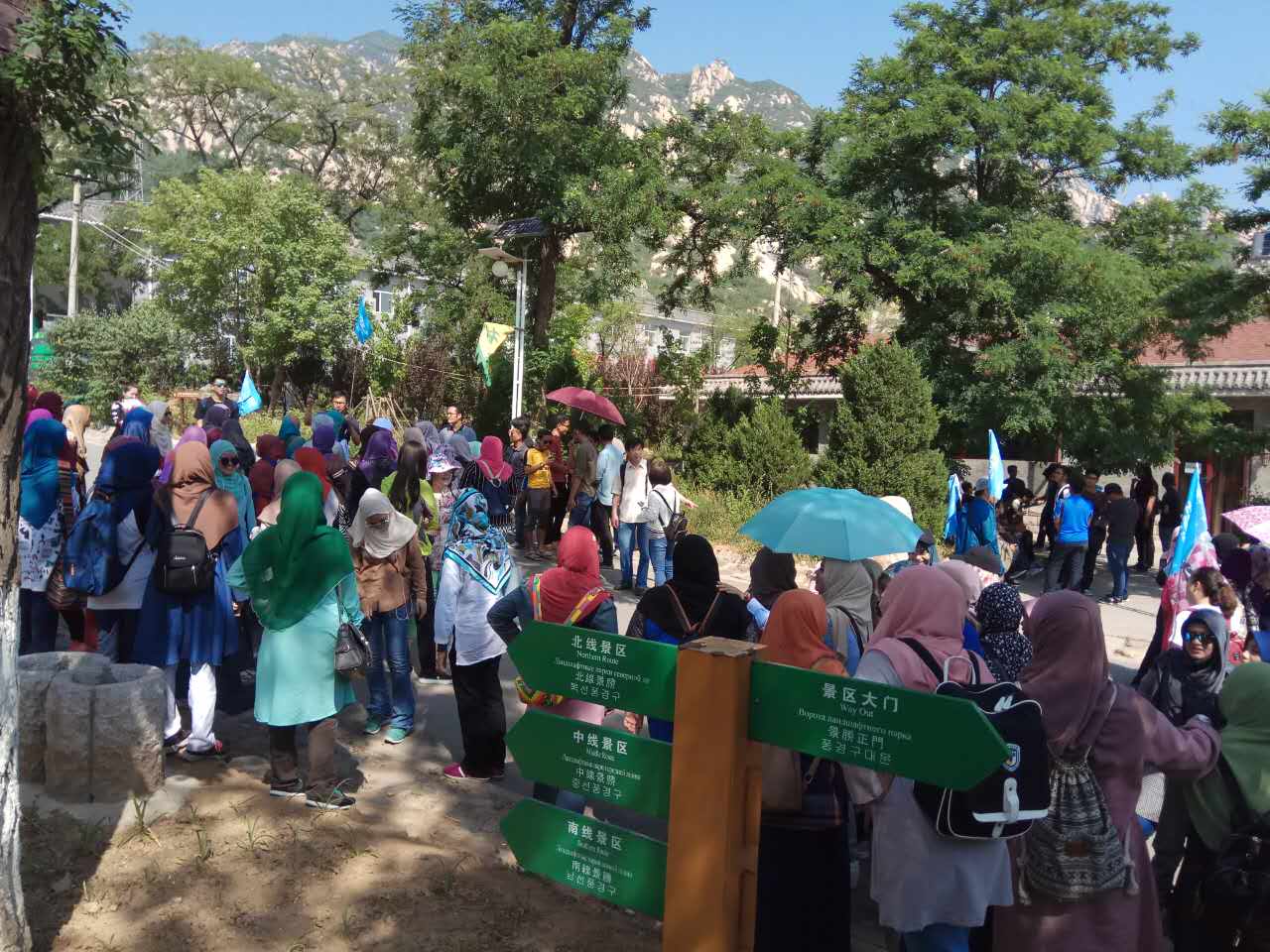 5月26日一早,北外必赢242net官网对外汉语系全体马来师资项目的留学生及教师一行222人,从北外出发到访北京郊区进行一天的市内语言实践活动。上午9点到达凤凰岭,在导游的带领下,同学们不惧高温,坚持爬上了凤凰岭。午饭后,同学们来到了车耳营民俗村,进入农户家进行深入访谈!访谈结束后,下午五点到达北外结束了一天的语言实践活动!