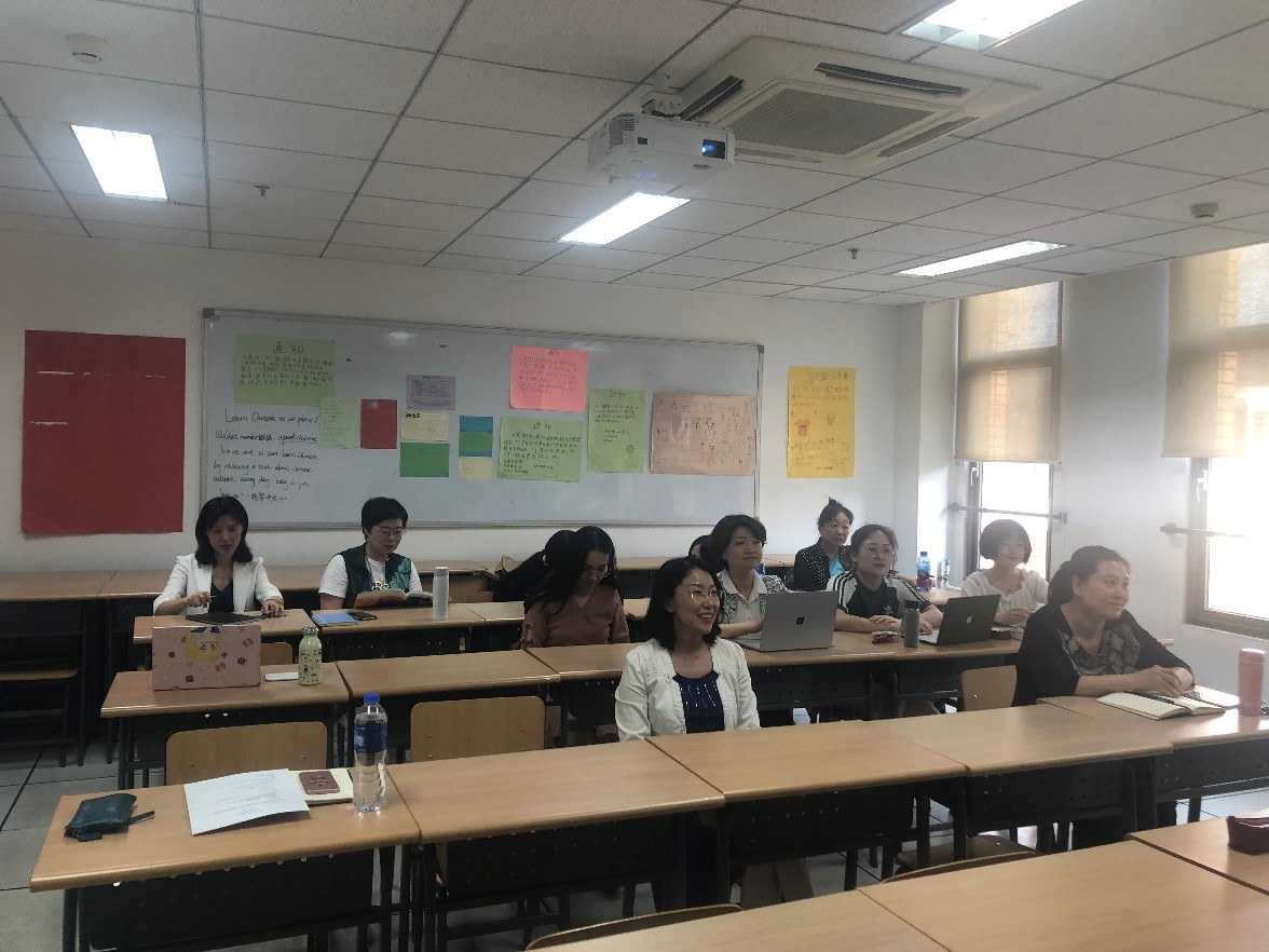 此次口语教研室分享会上,进修部9位任课老师均做了精彩发言,同时也有其他部门老师参与了热烈讨论。发言中一部分是关于小组合作形式的探讨,另外一部分是合作学习中需要注意的问题。既有经验分析,也有高效课堂活动的展示。