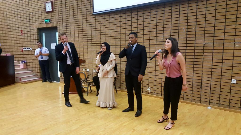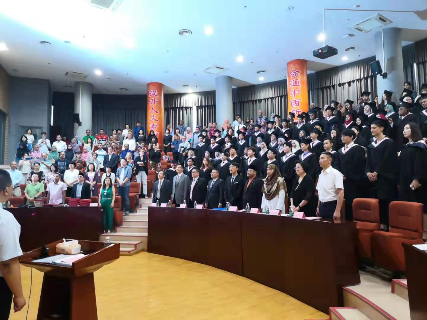 6月28日下午,2019届本科留学生毕业典礼在文华厅举行。马来西亚宗教事务部部长穆贾希德、部长夫人Datin Seri Zuraida、马来西亚驻华大使馆教育参赞侯春兴出席典礼,我校留学生办公室主任李冰、必赢242net官网执行院长张晓慧、党总支书记刘厚广、院长助理朱勇、张学增以及任课教师、毕业生家长参加典礼活动。典礼由对外汉语系主任孟德宏主持。