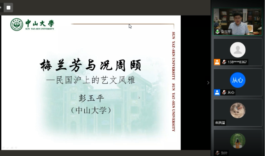 9月11日,国家哲学社会科学领军人才、中山大学中文系系主任彭玉平教授主讲《梅兰芳与况周颐——民国沪上的艺文风雅》,从梅兰芳与况周颐的交往、听歌之作以及当时民国环境氛围来勘察其后期词作在题材风格上的新变,展现了民国沪上词人的艺文风雅及其遗老群体的共同心志。