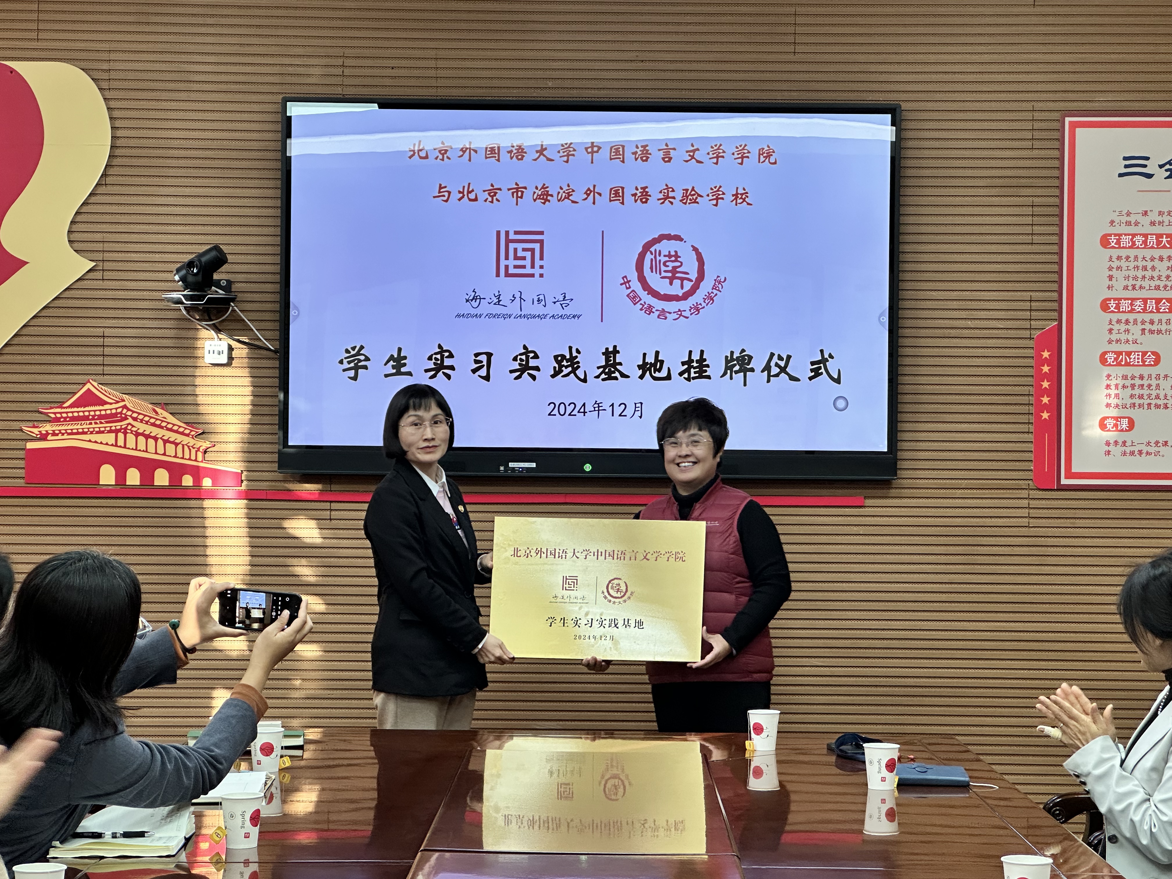 为全面贯彻落实党的教育方针,拓宽优质就业途径,探索人才培养新模式,2024年12月4日,必赢242net官网与海淀外国语实验学校举行实习实践基地共建揭牌仪式。海淀外国语教育集团执行总裁、执行校长黄瑞华,海淀外国语实验学校副校长、北京市正高级教师孙凤霞,海淀外国语藤飞学校教学副主任刘娟,必赢242net官网党总支书记蔡芝芳、副书记曹文婷,辅导员李美玲、初威言,学院10位在校生和目前就职于海淀外国语学校的3位校友共同参加了本次活动。